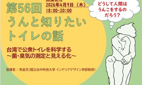 連続セミナー「うんと知りたいトイレの話」のお知らせ 第56回 台湾で公衆トイレを科学する Seminar Series: “Let’s Learn More About Toilets” Vol.56 Scientific Analysis of Public Toilets in Taiwan